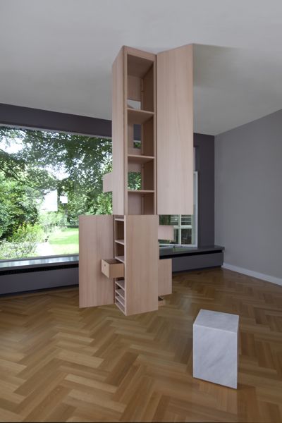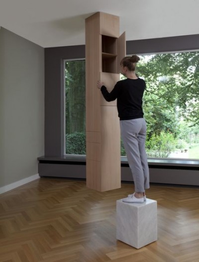 Stylově řešený závěsný nábytek, který představila designérka Sophie Mensen, ztvárňuje sloup, zavěšený od stropu. Sloupy jsou obvykle konstruktivní prvky, které podepírají a zároveň jsou něčím víc než jen dekorativním předmětem. Sloupová skříň je funkčním a zároveň designovým řešením interiéru a vkusného řešení využití kapacity volného prostoru.